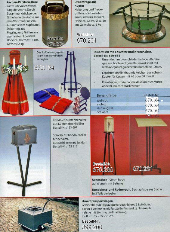 Urnen-Zubehör: Aschen-Verstreu-Urne, Urnentrage, Urnentisch, Urnen-Transportwagen